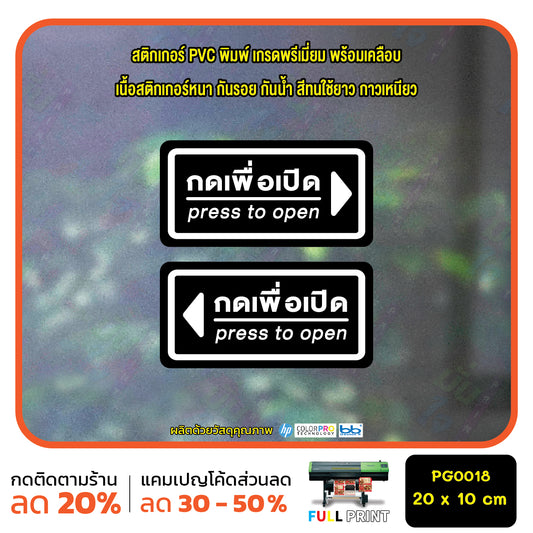 สติ๊กเกอร์ PVC Print พิมพ์ ติดประตู กดเพื่อเปิด press to open ชุด 2 ชิ้น (PG0018) สติกเกอร์ สติ๊กเกอร์
