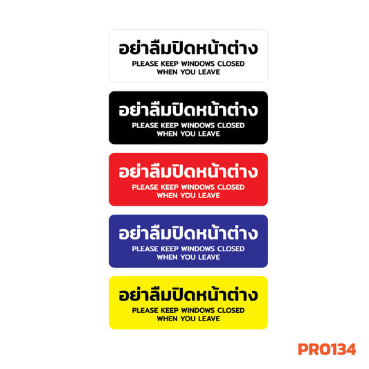 สติกเกอร์พิมพ์ อย่าลืมปิดหน้าต่าง KEEP WINDOWS CLOSED กันน้ำ ทนแดด เคลือบกันรอย PR0134 สติกเกอร์