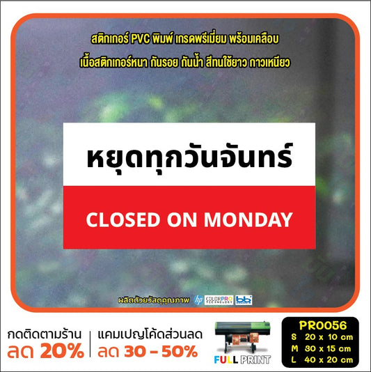 ป้ายวันหยุด สติ๊กเกอร์ PVC พิมพ์ กันน้ำ ทนแดด เคลือบกันรอย PR0056 สติกเกอร์ หยุดวันอาทิตย์