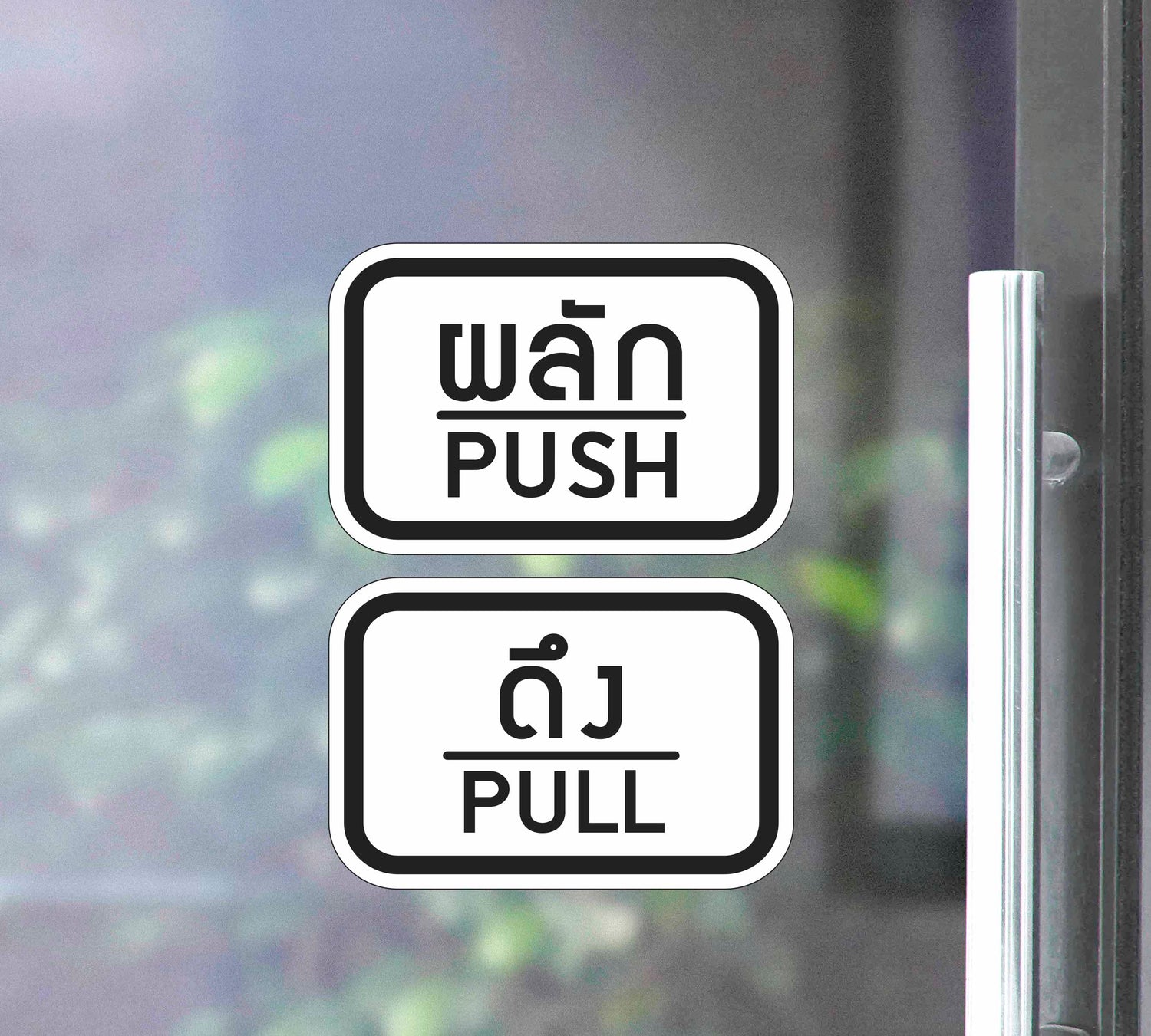สติ๊กเกอร์ติดกระจก ผลัก ดึง push pull ป้ายผลัก ป้ายดึง สติกเกอร์แต่งร้าน (G0023) สติกเกอร์ ป้าย ติดกระจก
