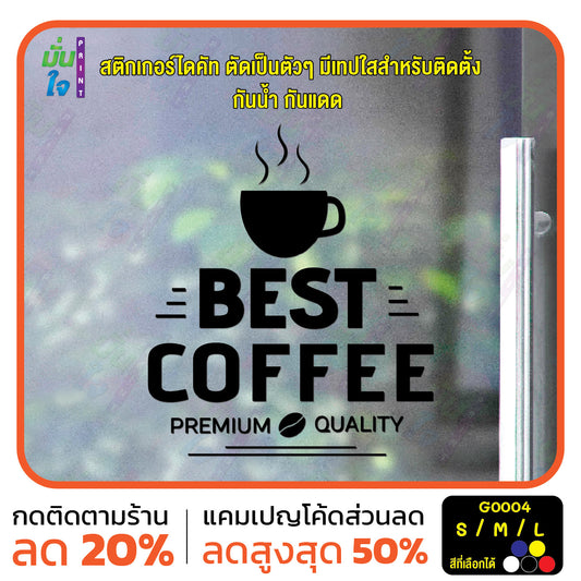 สติ๊กเกอร์ติดกระจก สติกเกอร์ร้านกาแฟ best coffee premium quality (G0004) สติกเกอร์แต่งร้าน