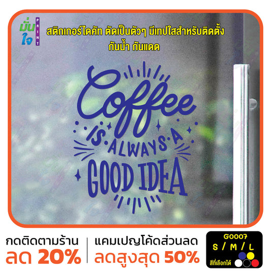 สติ๊กเกอร์ติดกระจก สติกเกอร์ร้านกาแฟ coffee is always a good idea (G0007) สติกเกอร์แต่งร้าน สติกเกอร์ มั่นใจปริ้นท์