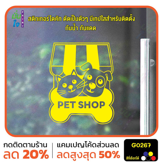 สติ๊กเกอร์ติดกระจก PET SHOP รูปแมว รูปสุนัข สติกเกอร์แต่งร้าน สติกเกอร์ไดคัท สติ๊กเกอร์ G0267