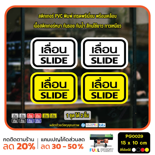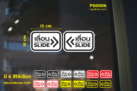 สติ๊กเกอร์ PVC พิมพ์ ติดประตู เลื่อน-slide ชุด 2 ชิ้น Size 15 x 10 (PG0029) สติกเกอร์ ป้ายเลื่อน