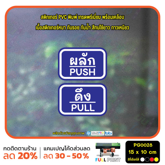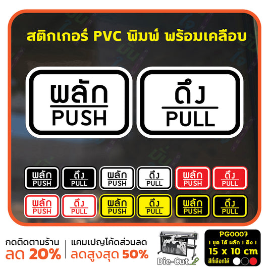 สติ๊กเกอร์ PVC พิมพ์ ติดประตู PUSH-PULL ผลัก-ดึง ชุด 2 ชิ้น Size 15 x 10 cm.(PG0007) สติกเกอร์ สติ๊กเกอร์