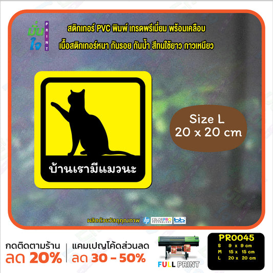 สติ๊กเกอร์ PVC พิมพ์ บ้านเรามีแมวนะ กันน้ำ ทนแดด เคลือบกันรอย (PR0045) สติกเกอร์ ติดรถได้