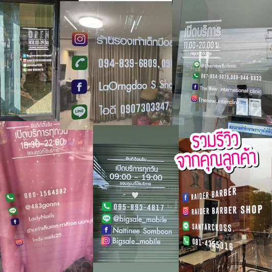 สติกเกอร์ติดกระจก Size 35 x 35-40 cm. ชื่อร้านค้า เบอร์โทร id line facebook instagram (PG0001)